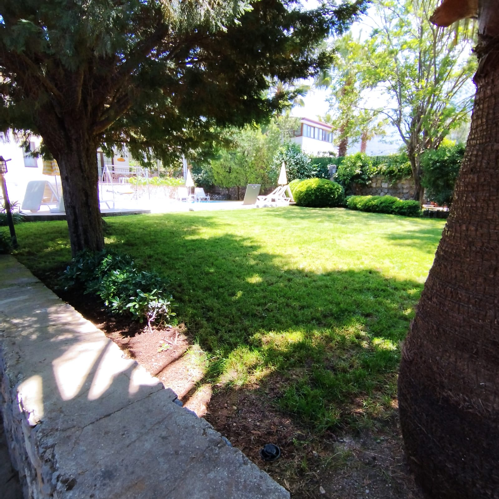 Relax in your own 10m x 5m private swimming pool, surrounded by a sun-drenched terrace featuring 8 premium loungers and parasols. The villa is embraced by mature, manicured gardens filled with olive, lemon, and banana trees, offering a lush green backdrop and a dedicated grass area for family games.